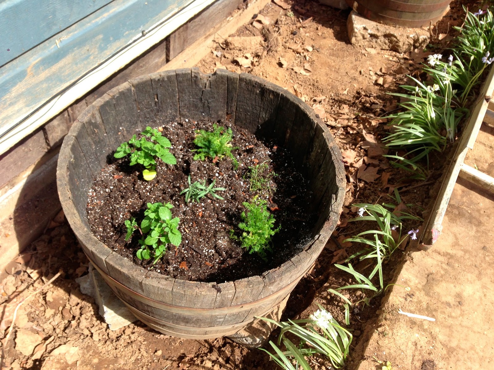 In another section I dug up sod, added dirt, and planted a mix of herbs and some violas.
